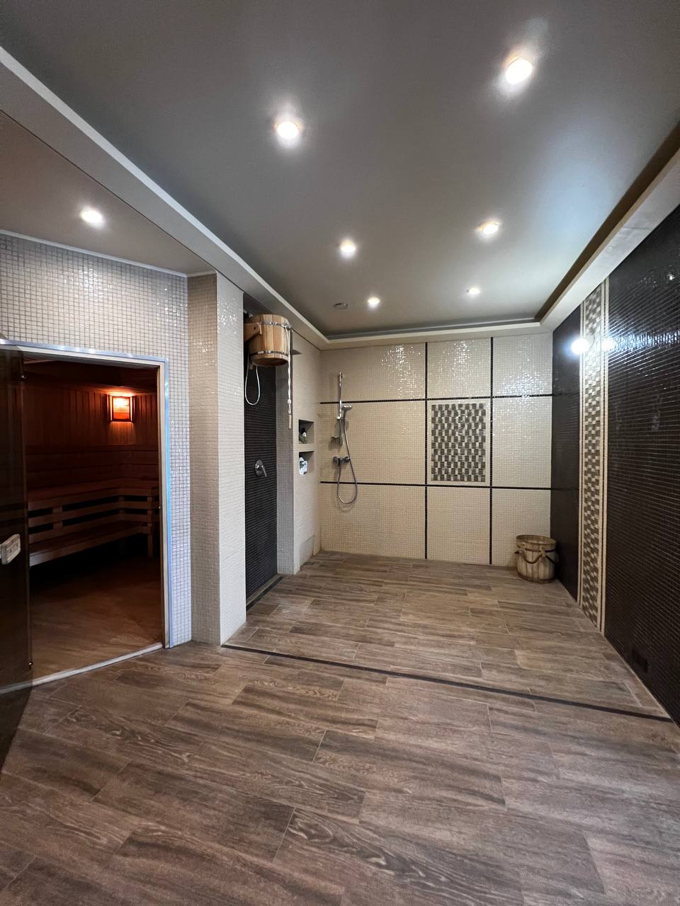 Пространство для занятий и практик, каминный зал, баня, красивая терасса и деревянный подиум